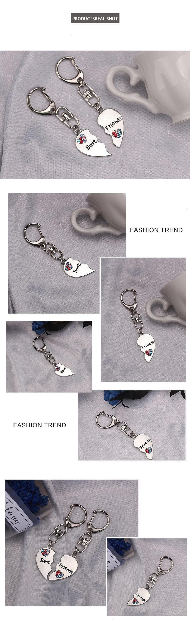 送料無料 DIY 親友キーホルダーハートメタルキーホルダー女性男性ペンダント BFF チャームジュエリーギフト 2019 無料 corlour チェーン AE335677712737387962