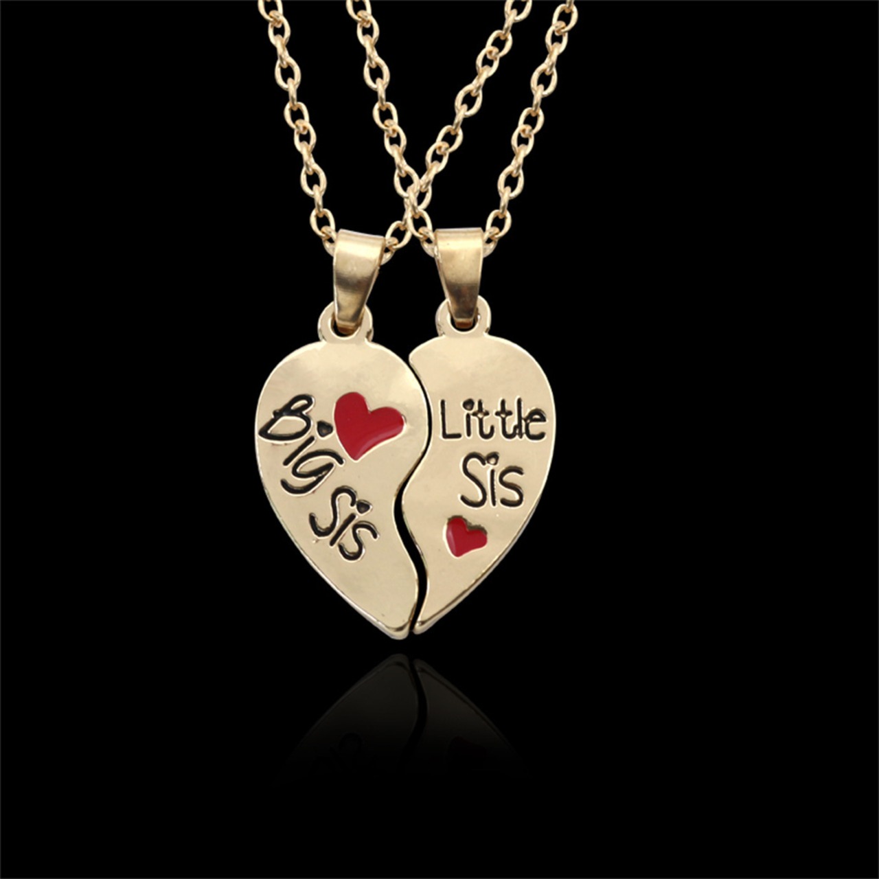 送料無料 ビッグリル Sis ネックレス女の子 2 個セットの BFF 手紙ペンダントハート型の女性のネックレスホームジュエリーパーティーギフト レース AE335677773380593711
