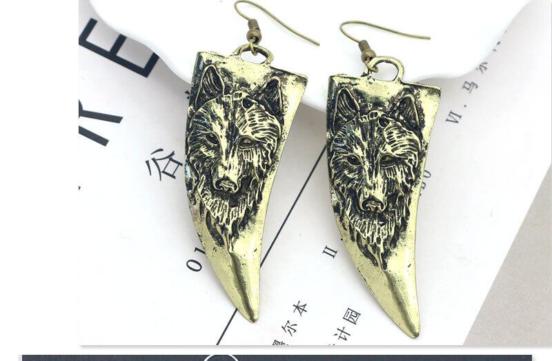 送料無料 絶妙なパンクヴィンテージホーン型オオカミ犬動物ロングイヤリング女性ブロンズ金属イヤリング Brincos 指輪 ビンテージ AE335677762330654632