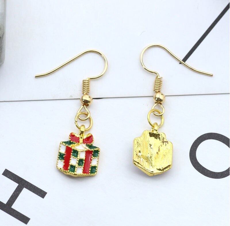 送料無料 クリスマスかわいいサンタギフトボックスイヤリング女性女の子子供エナメルクリスマスロングイヤリング飾りブークレドオレイル 大人ガーリー スウィート キュート カジュアル キッズ 指輪 AE335677749096548942