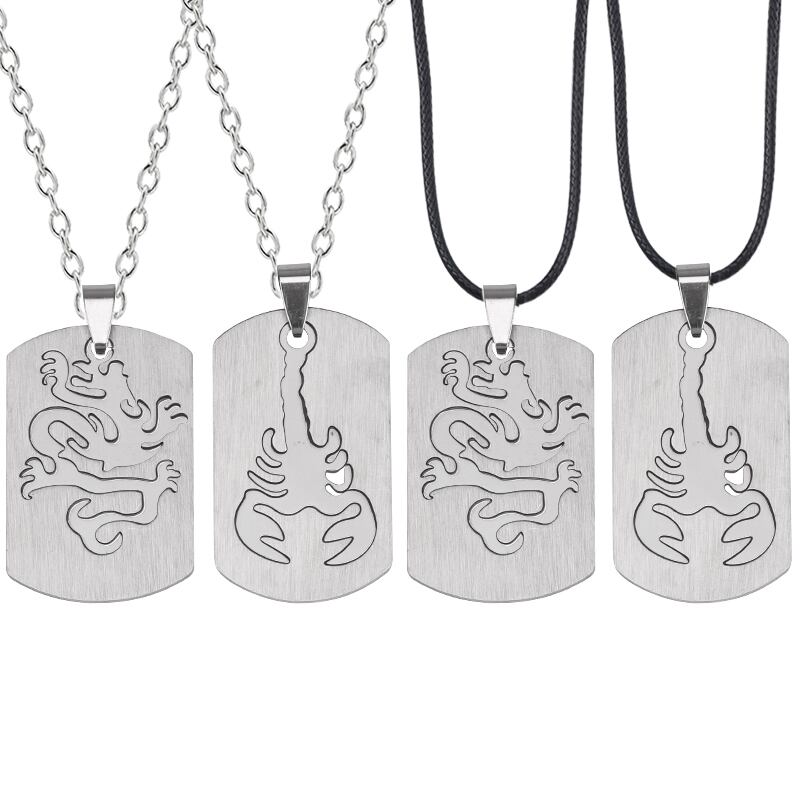 送料無料 ステンレス鋼のカップルネックレス襟長方形彫刻ネックレスドラゴンとサソリペンダントメンズジュエリーギフト レース AE335677724934675546