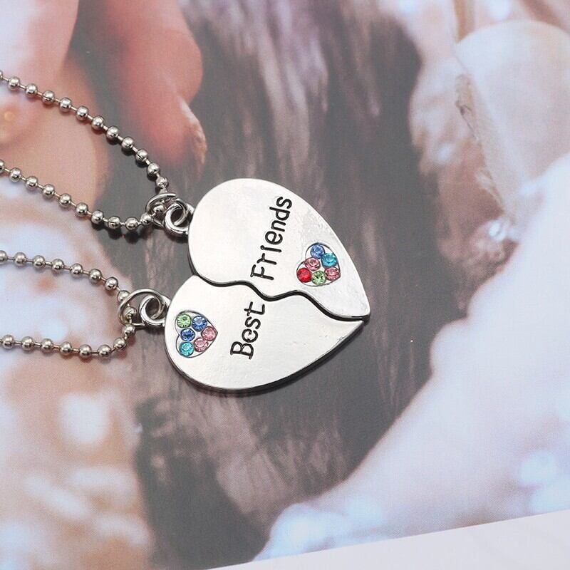 送料無料 トレンディな親友ペンダントネックレス女性 Ful ラインストーンラブハート Bff ネックレスペンダント Corlour 友情ジュエリーコラル レース AE335677733894230027