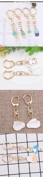 送料無料 アリスガールウサギキーチェーン鉢植え多肉植物サボテンキーホルダー漫画エナメルアニマルジュエリー女性 Chaveiro AE335677746852134102