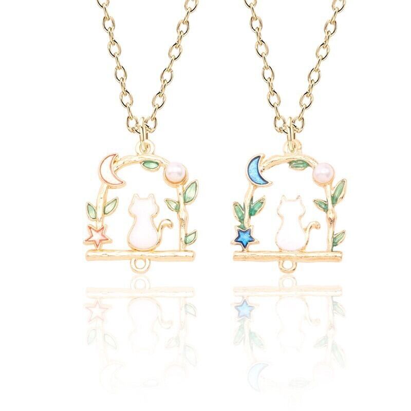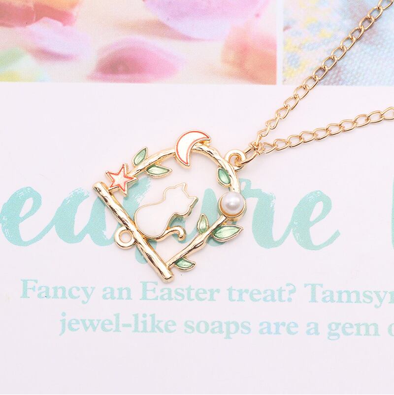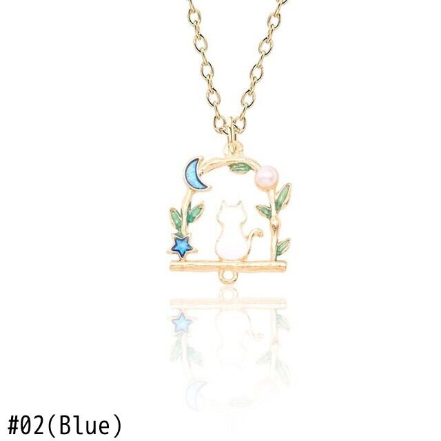 送料無料 Diy 漫画ムーンウサギチャームネックレス女性ジュエリー金属エナメルカラフルなフレーム動物ペンダントネックレスパーティーギフト レース AE335677792266450162