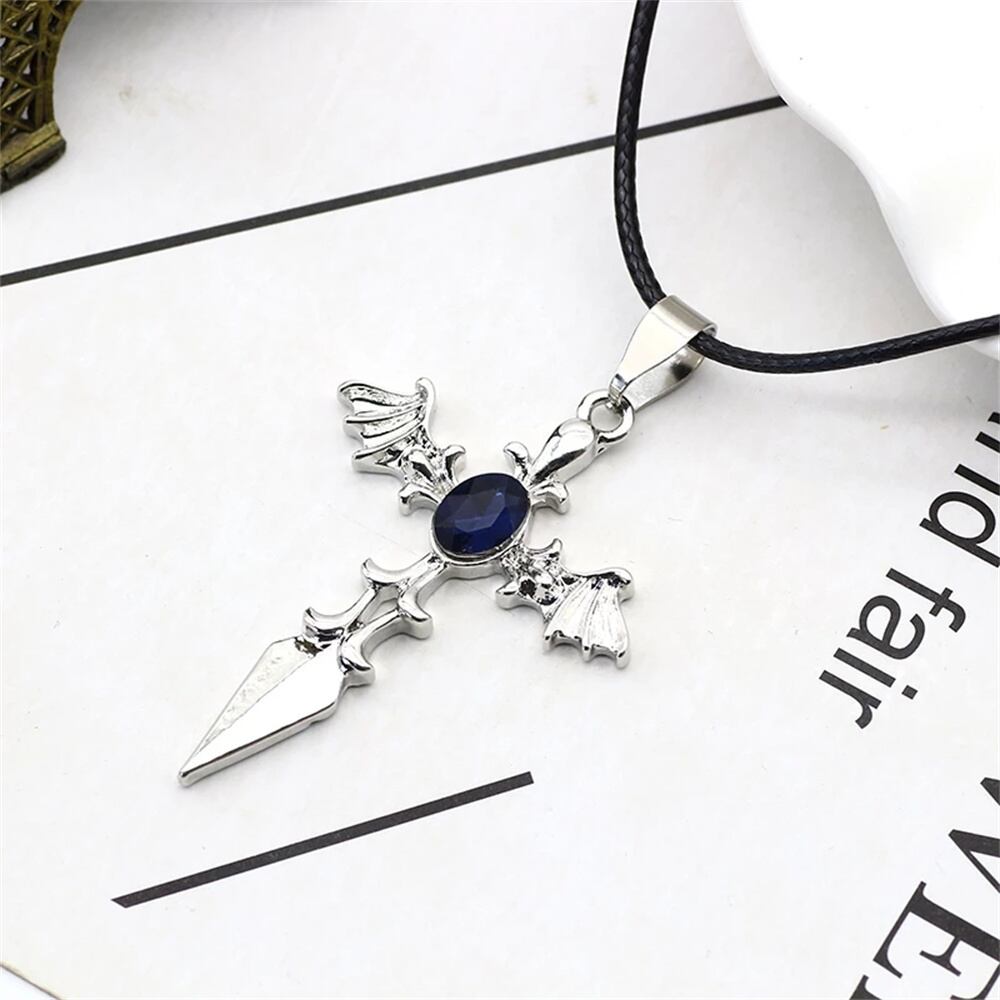 送料無料 スチーム パンク クロス ペンダント ブルー クリスタル ラインストーン パンク翼矢印ネックレス ユニセックス ヴィンテージ チャーム ブラック ロープ ネックレス & ペンダント レース ビンテージ AE335677739383447915