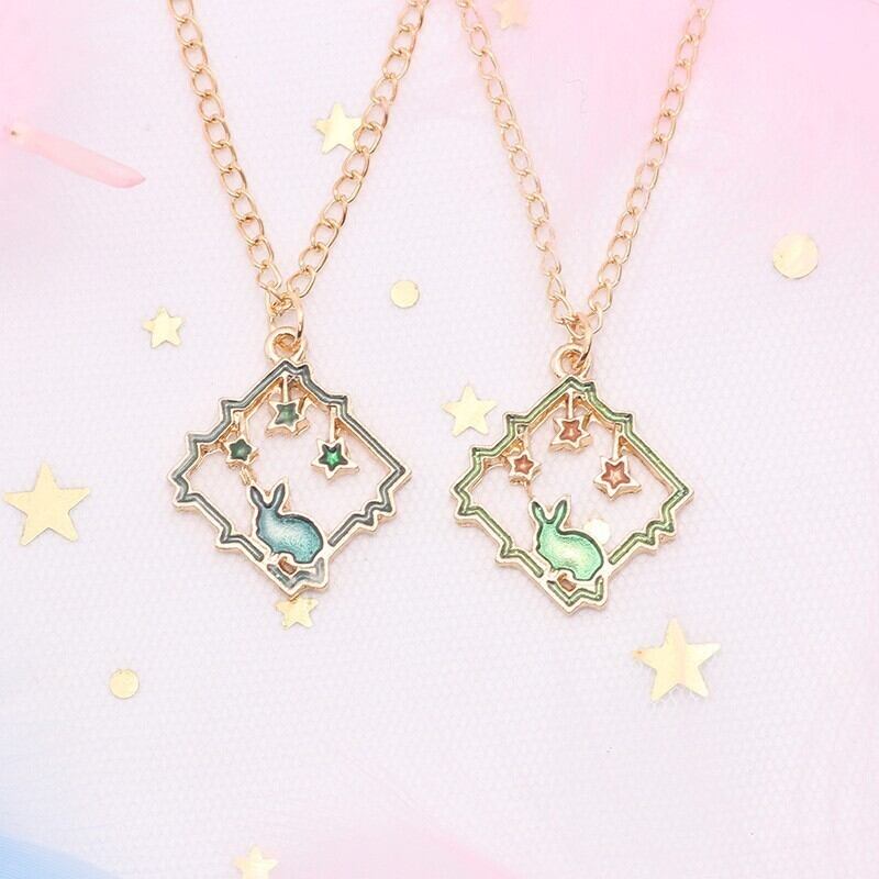 送料無料 Diy 漫画星空ウサギチャームペンダントネックレスエナメルフレームスターバニーペンダントネックレス動物ジュエリーコラル レース AE335677756354550660