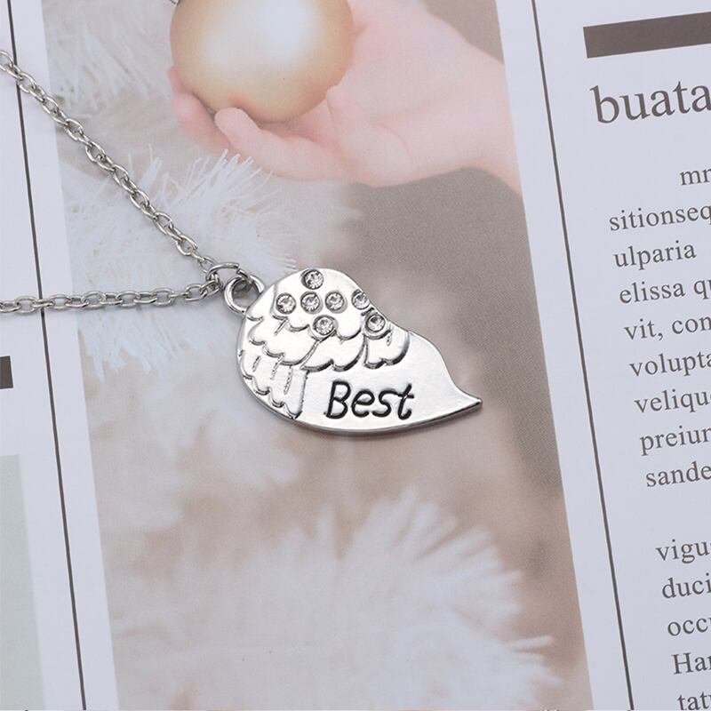 送料無料 親友 2 個女性ネックレス Corlour ホワイトラインストーン天使の羽ハートチョーカー Bff ペンダント友情ジュエリーコリアー レース AE335677736977175418