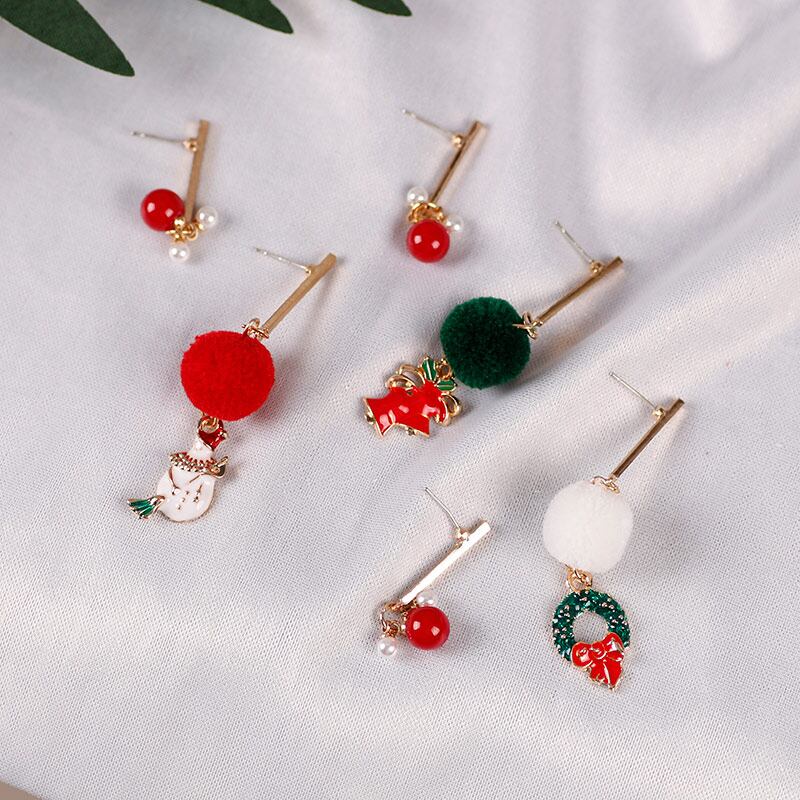 送料無料 2020 かわいい漫画クリスマスイヤリング女性非対称雪だるまクリスマスリースぬいぐるみボールペンダントジュエリーギフト 大人ガーリー スウィート キュート カジュアル 指輪 AE335677768816375654