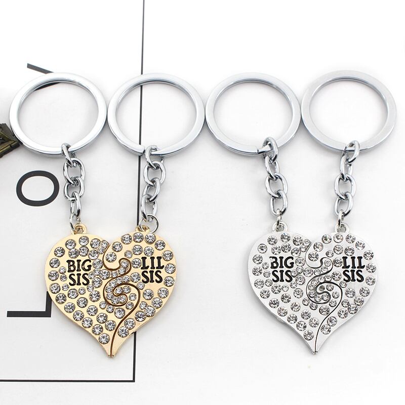 送料無料 2 ピース/セット高級ラインストーン姉妹キーホルダー Big Sis Lil Sis ハートキーチェーンリング親友 Chaveiro 指輪 AE33567775158793079