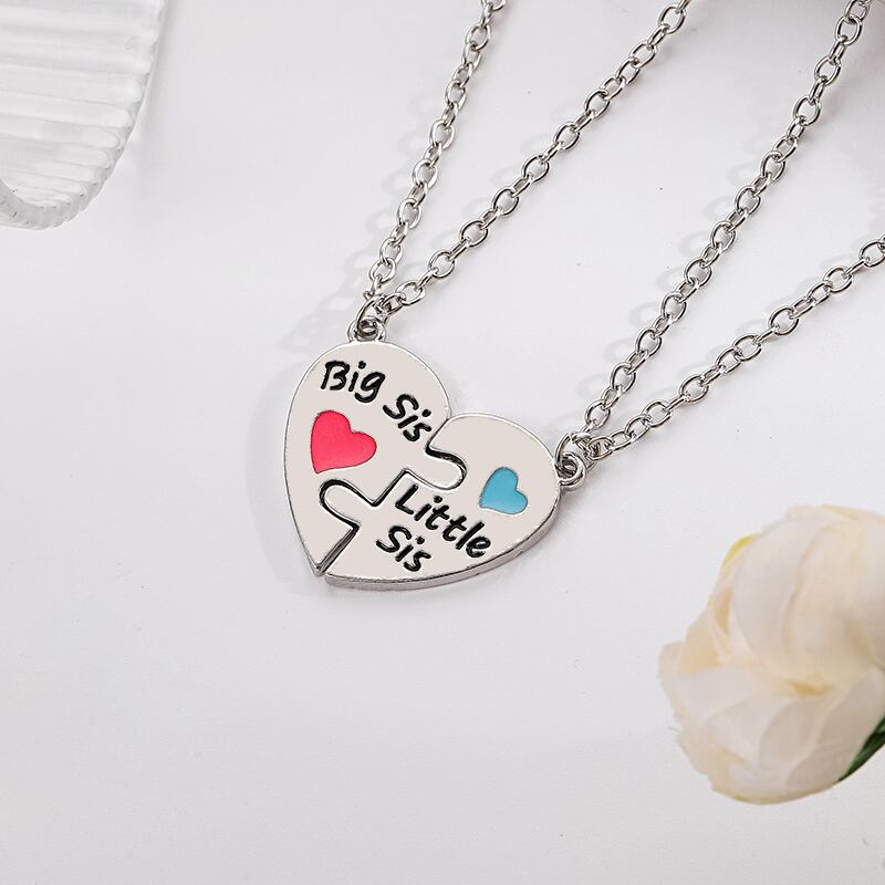 送料無料 ビッグリル Sis ネックレスガールズ 2 個セットの BFF レターペンダントハート型の女性のネックレスホームパーティージュエリーギフト レース AE335677793626051075