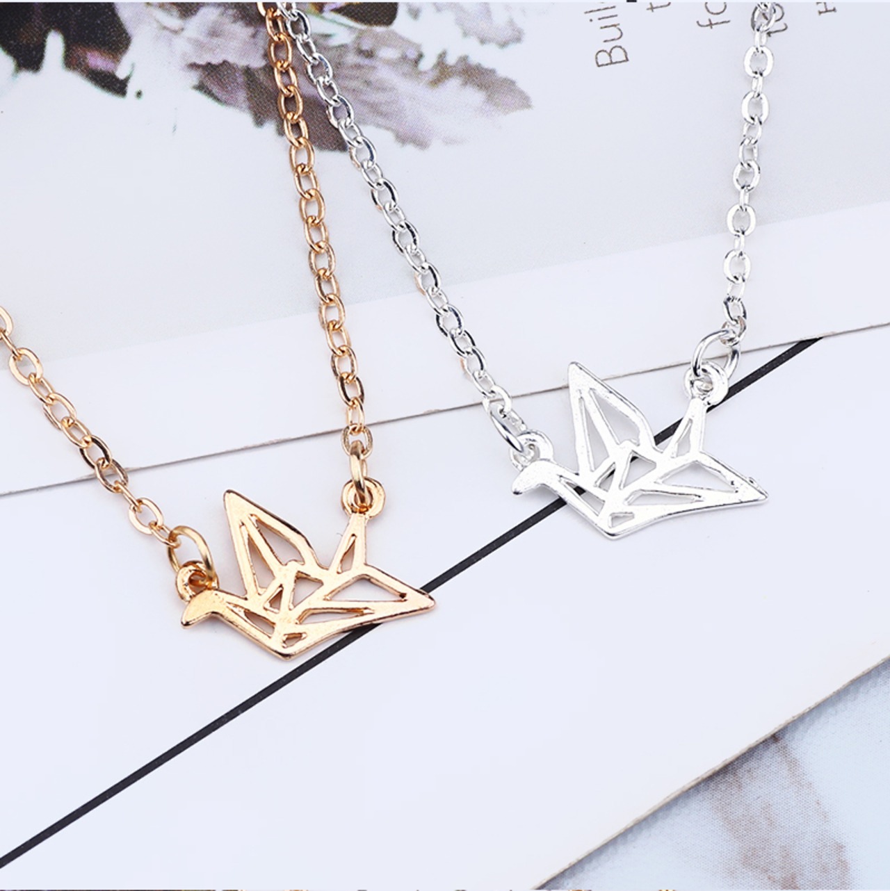 送料無料 シンプルな折り紙クレーンネックレス中空合金ペンダント 2020 ジュエリーガールズチョークジュエリーギフト レース AE335677730580564246
