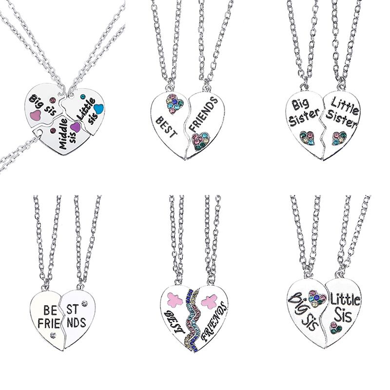 送料無料 2/3 個の高級親友ペンダントネックレス女性ラブハートクリスタル姉妹ジュエリーアクセサリー レース AE335677751070471245