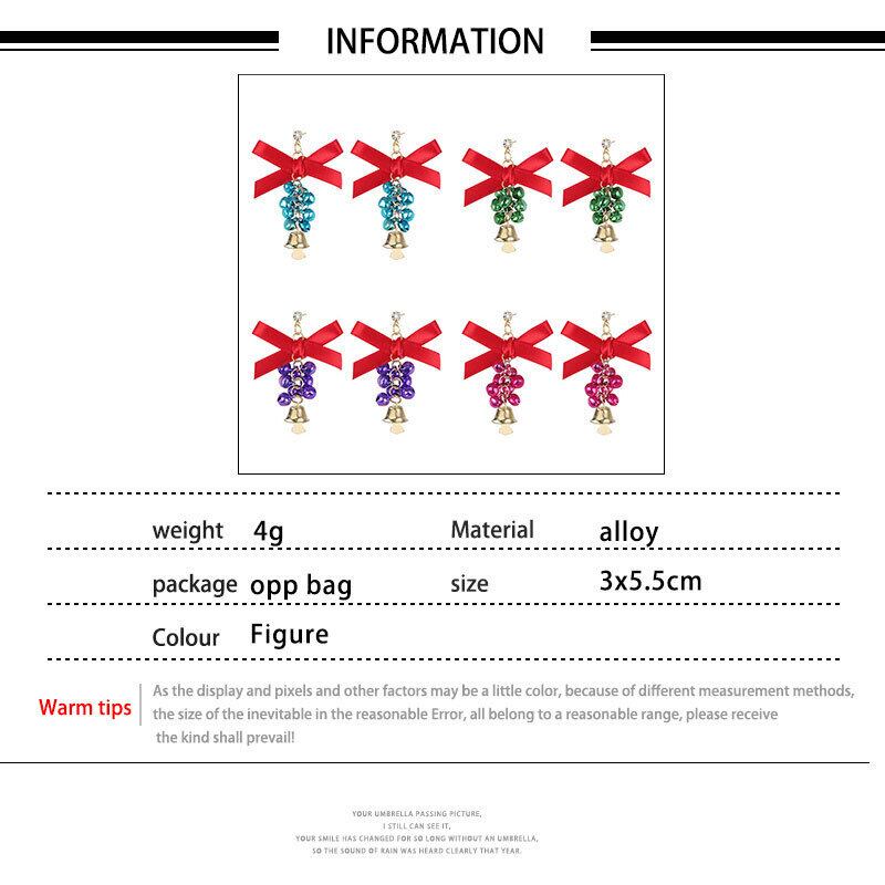 送料無料 クリスマス イヤリング レッド リボン カラー ベル ペンダント 合金 素材 ブルー グリーン パープル ピンク オプション シンプル ジュエリー ギフト 指輪 AE335677757603162215