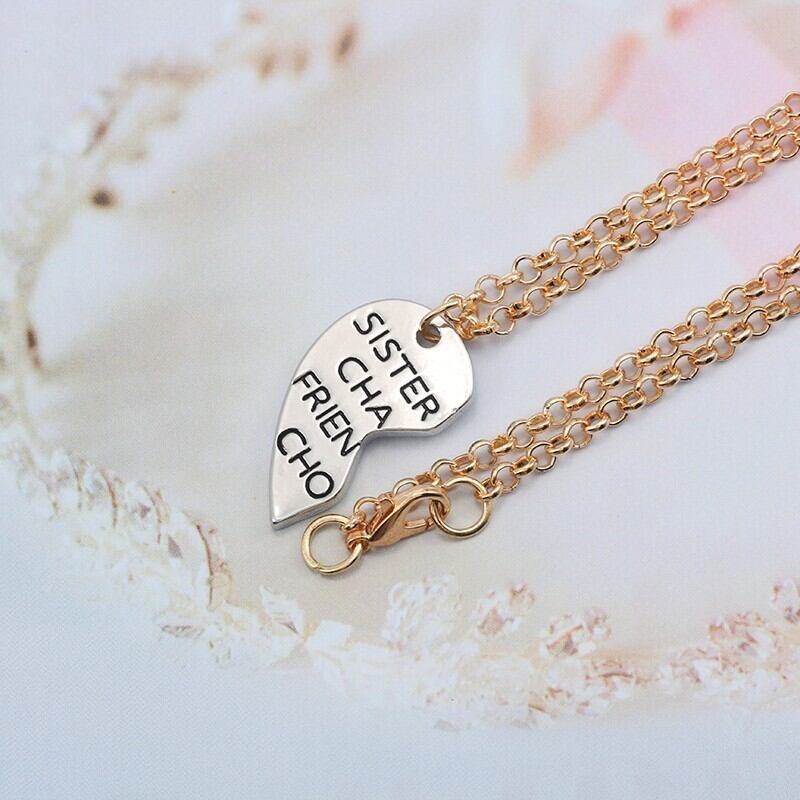 送料無料 ベストフレンズネックレス女性彫刻姉妹によるチャンスフレンズによる選択ラブハートネックレスペンダント友情ジュエリーcollares レース AE335677757604737369