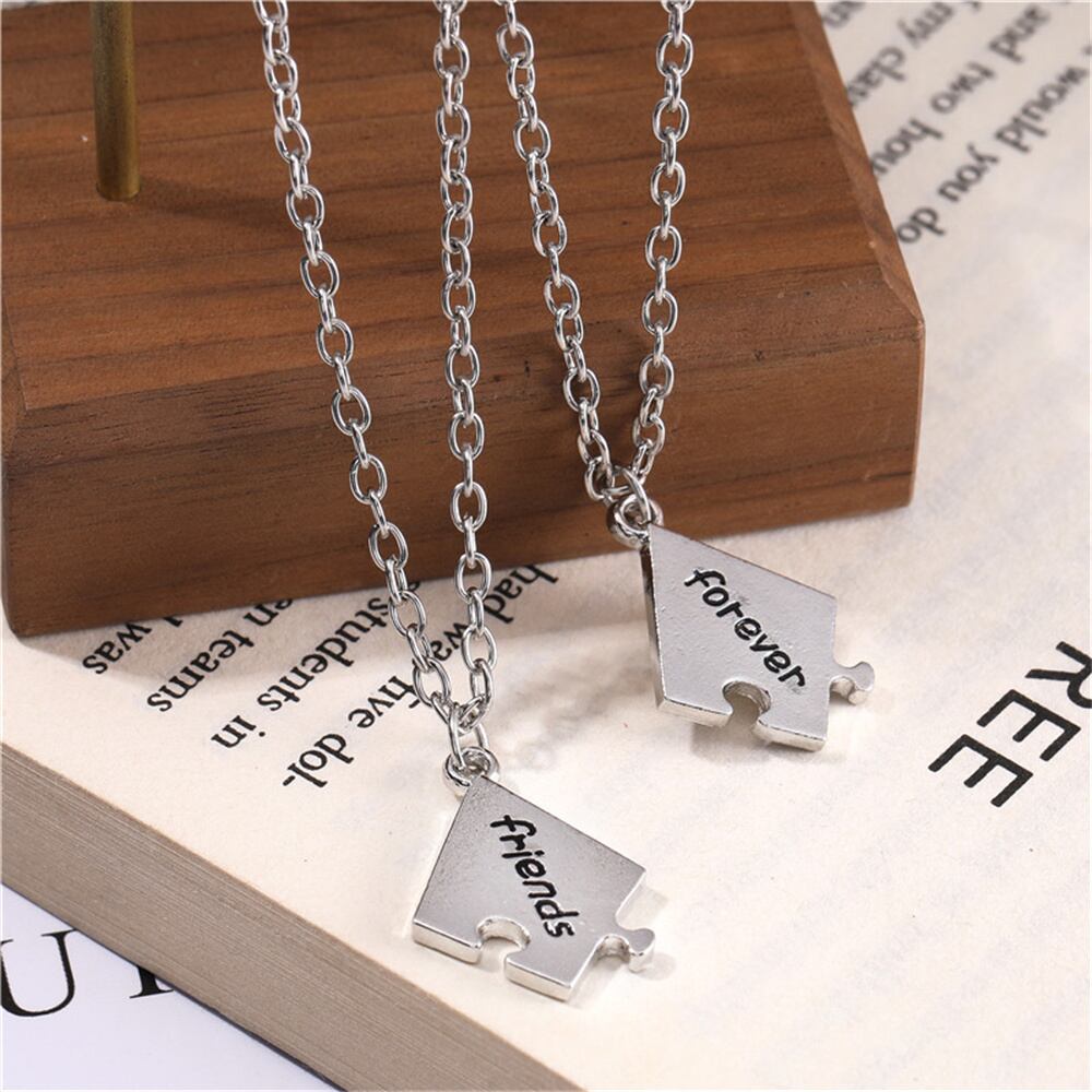 送料無料 4 ピース/セット親友これまでとこれまで亜鉛合金金属ネックレスクリエイティブ BFF 男性の女性のペンダントパーティージュエリーギフト レース AE335677760019724907