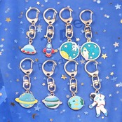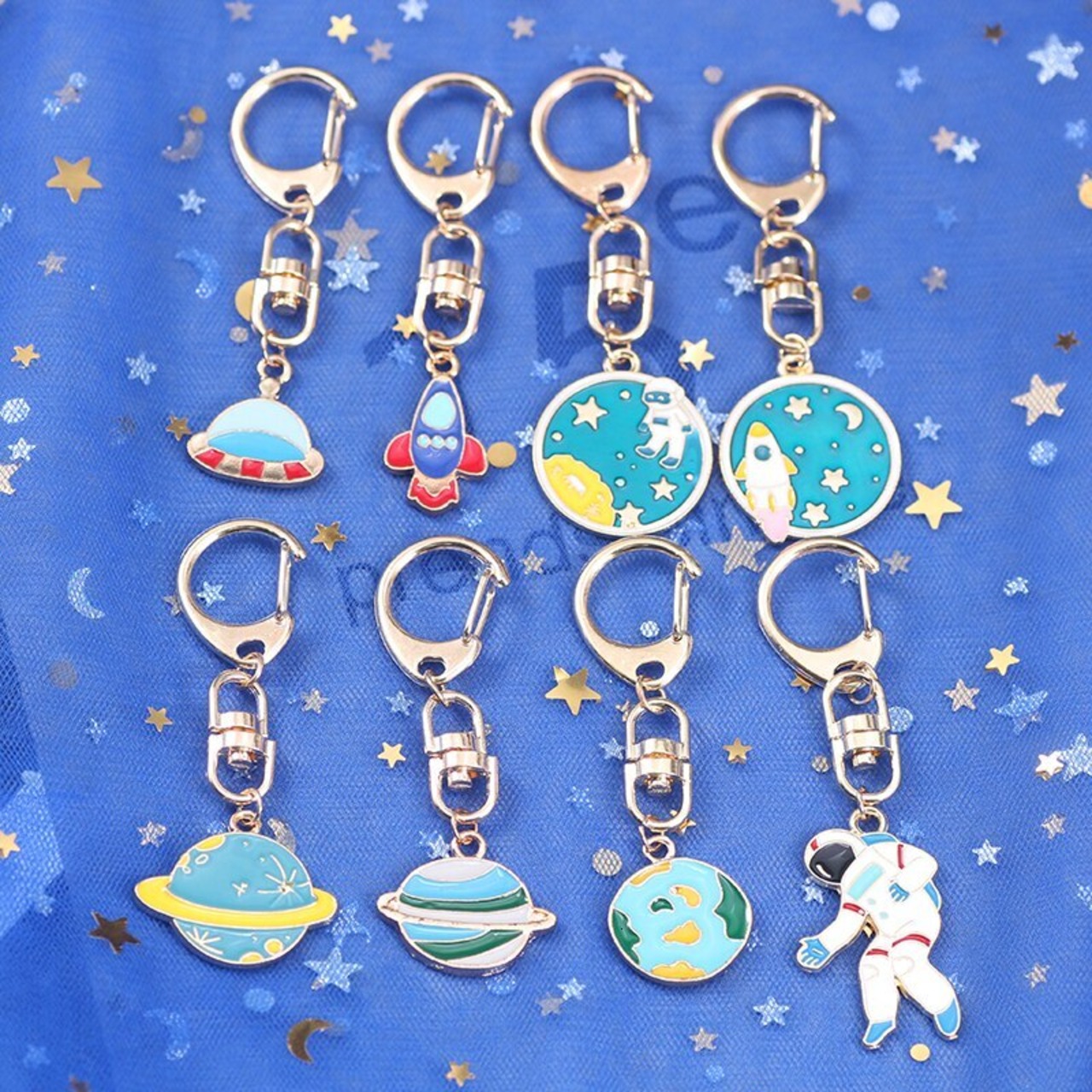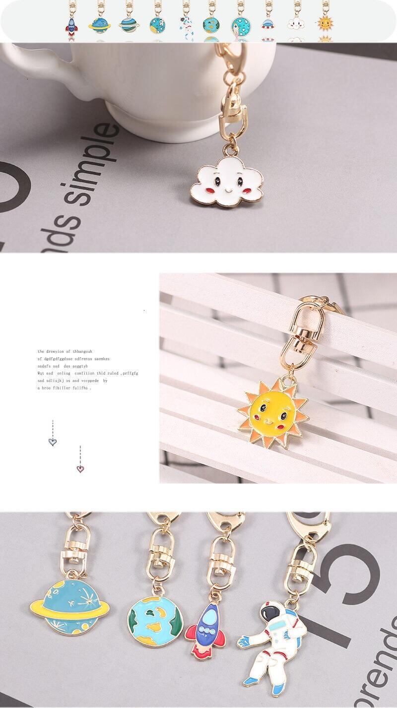 送料無料 ブループラネットロケット宇宙飛行士スターキーホルダー女性男性と子ぶら下げ太陽雲ペンダントキージュエリーギフト 2021 チェーン AE335677763929310381