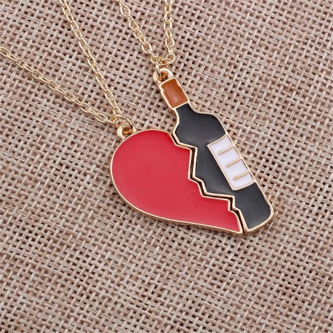 送料無料 2 ピース/セットトレンディなワインボトルハートネックレス & ペンダントクリエイティブ Winegl Winebowl ジュエリー結婚記念日ギフト Collares レース AE335677735218209491