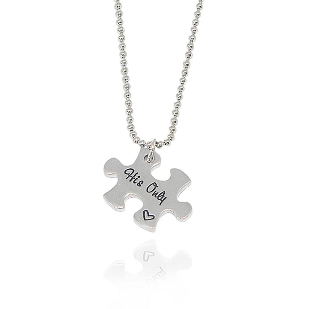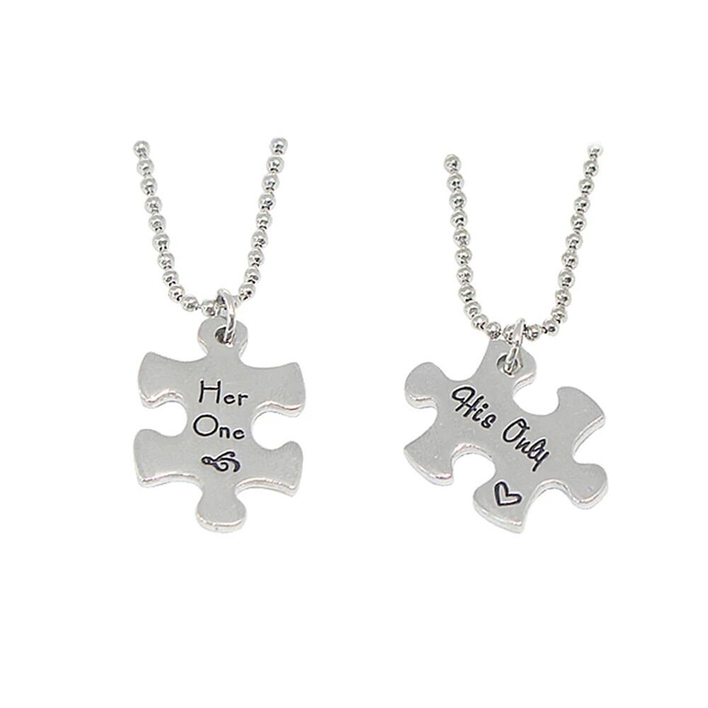 送料無料 2 ピース/セットネックレス幾何学的図形パズル形状ペンダント亜鉛合金刻印文字カップルバレンタインデーのギフト レース AE335677749265039004
