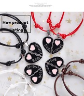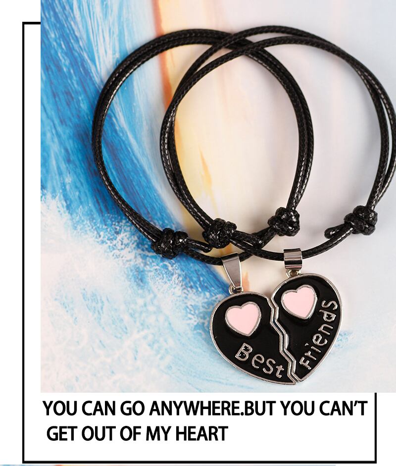 送料無料 2 の親友レッドレザーロープブレスレット BFF 文字ステッチハート型のペンダント男性と女性のジュエリーブレスレットオム AE335677720424630876