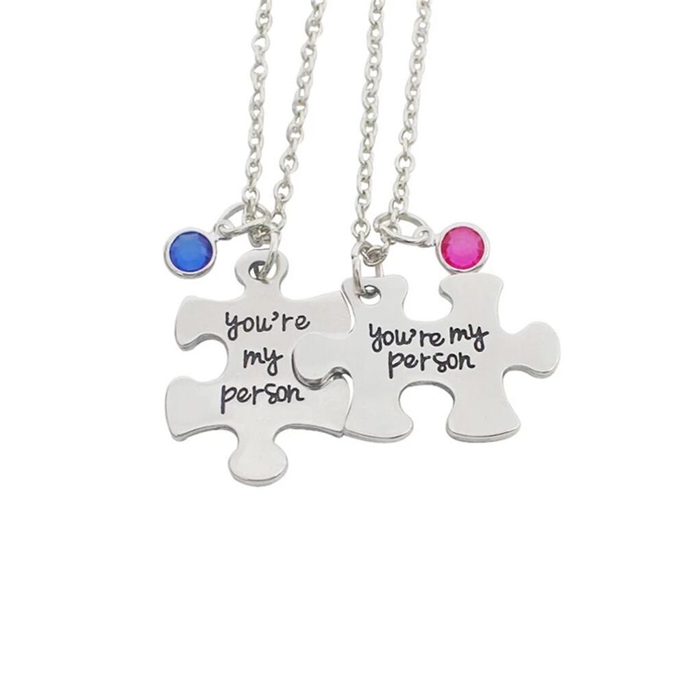 送料無料 2 個セット ヴィンテージ You Are My Person ペンダント ネックレス カップル ブルー ピンク ラインストーン シャイニー クリスタル アニバーサリー 婚約 ギフト レース ビンテージ AE335677750352074254