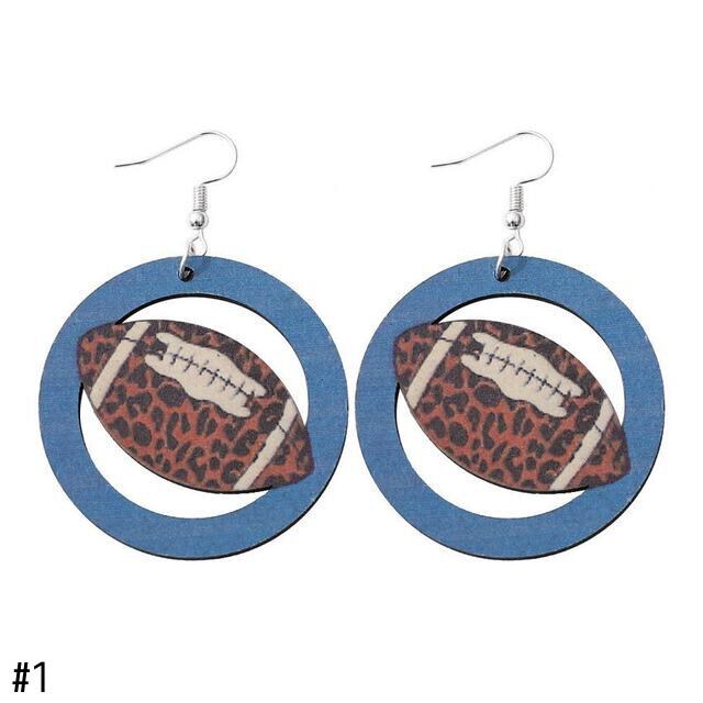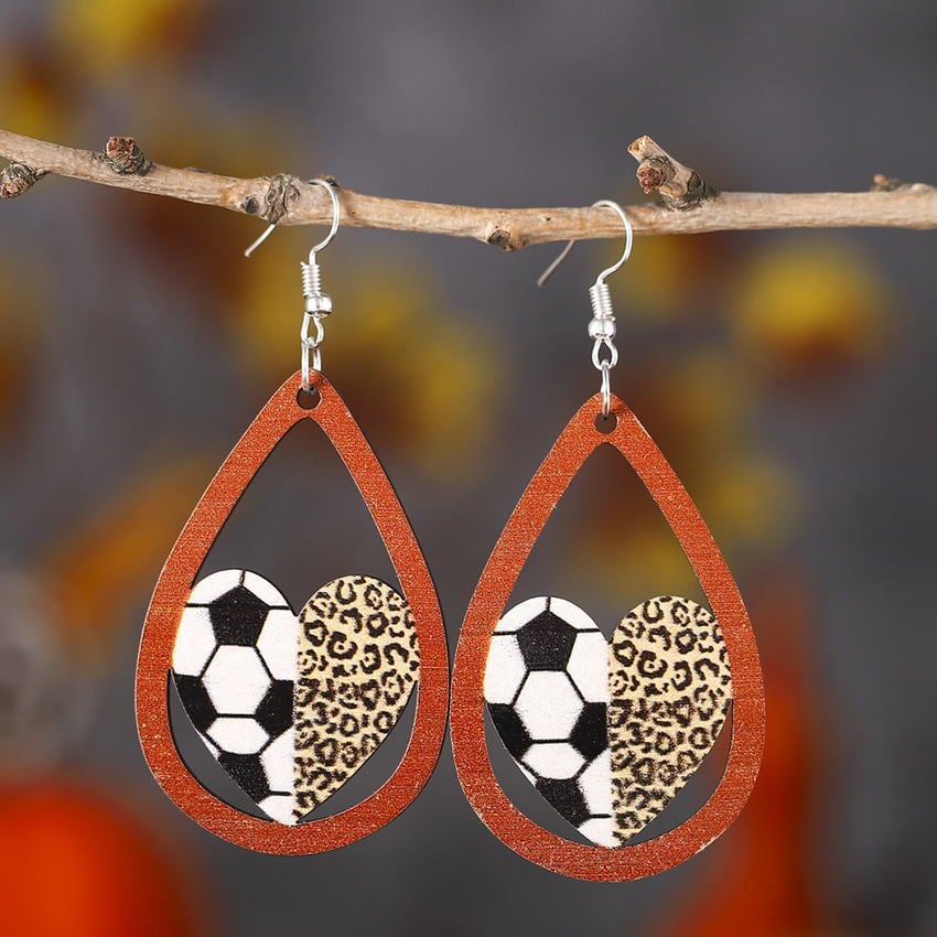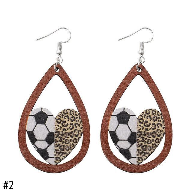 送料無料 2023 カットアウト木製ヒョウサッカースポーツイヤリング女性 Clics ラウンドティアドロップ形状サッカーウッドイヤリング 指輪 AE33211008033012270186