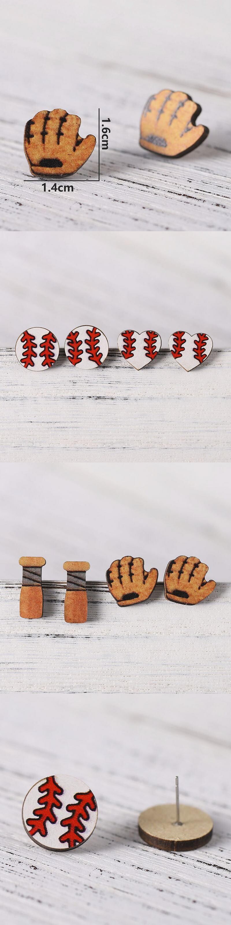 送料無料 木製野球バットスタッドピアス女性小さな丸いハート型のスポーツイヤリングブティックジュエリー 指輪 AE33211008076590526789