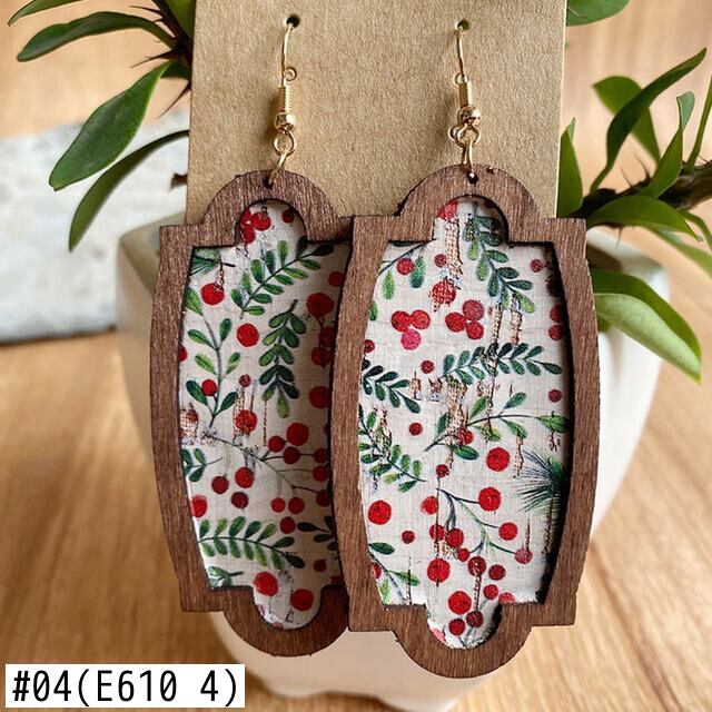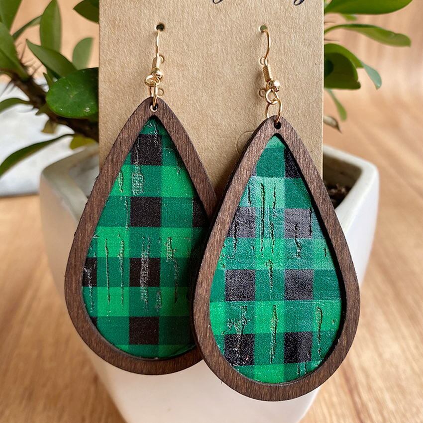 送料無料 クリスマススターバッファローチェック柄プリントウッドティアドロップフレームイヤリング女性クリスマスプレゼントホリデーギフト 指輪 AE33211008028262195932