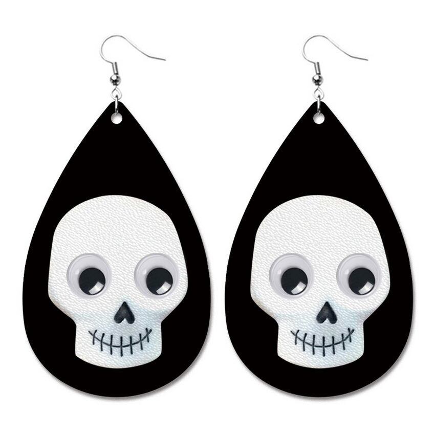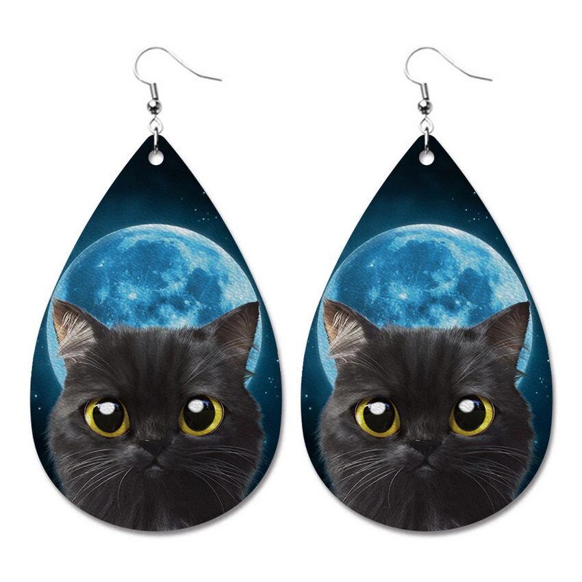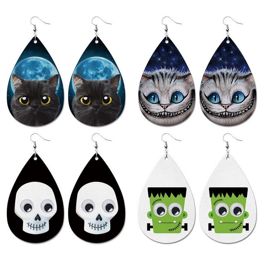 送料無料 かわいい漫画のパターン猫プリントビーガンレザーティアドロップイヤリング女性スカルプリントブラックイヤリング諸聖人の日ジュエリー 大人ガーリー スウィート キュート カジュアル 指輪 AE33211008085884724046