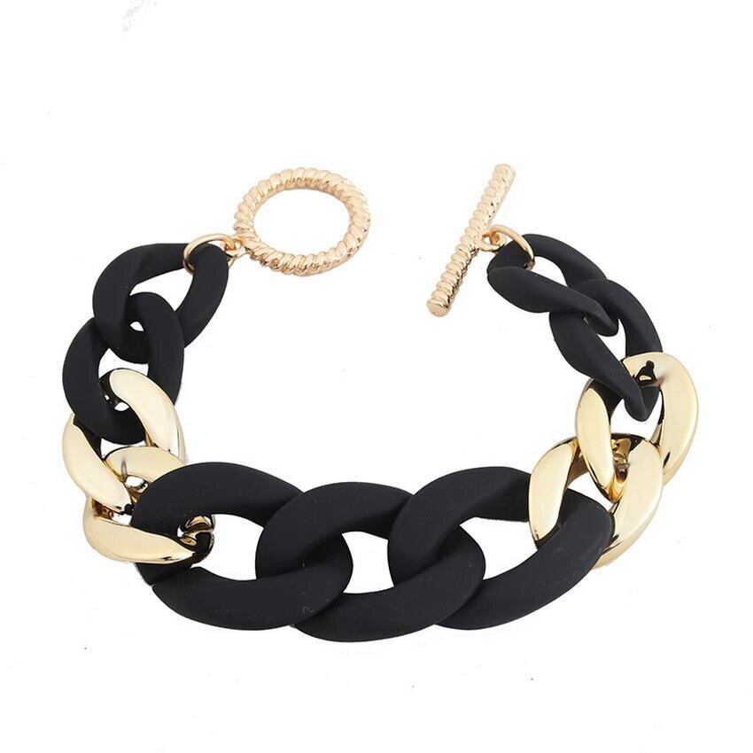 送料無料 ツートーンマットブラック樹脂リンクチェーンブレスレット女性 2021 トグルチェーンブレスレットジュエリー AE33211008078905001358