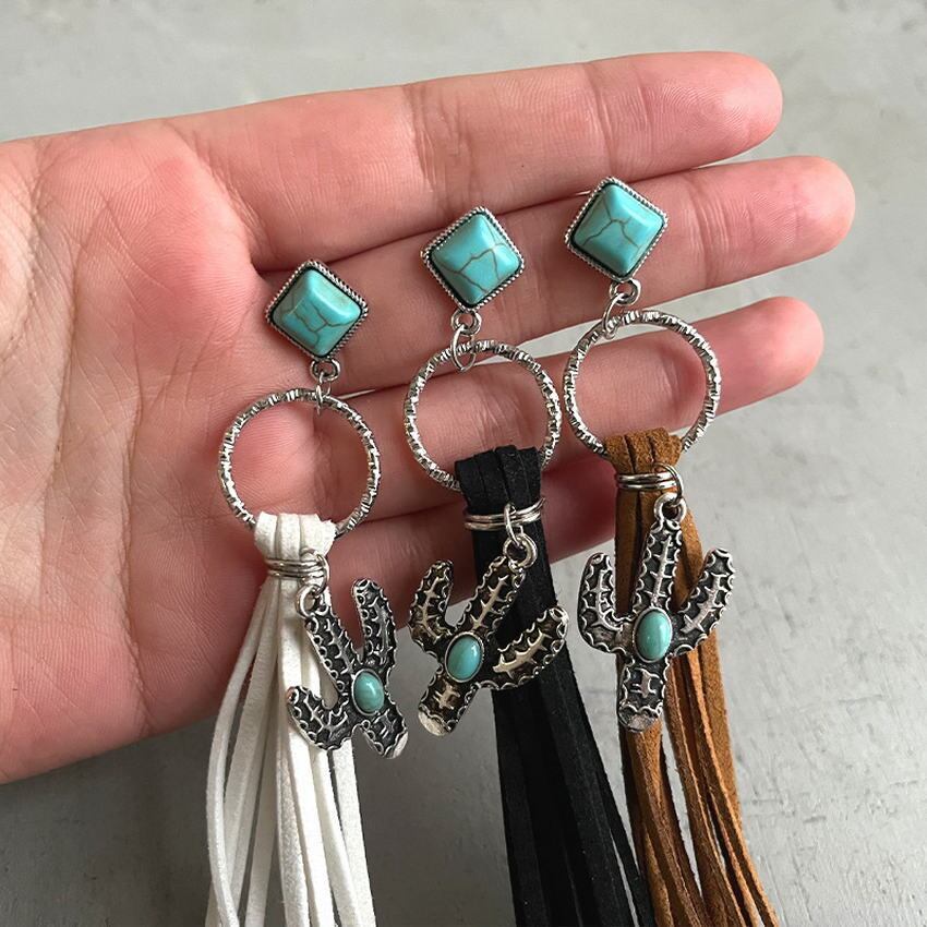 送料無料 スクエア ターコイズ ピアス メタル サボテン チャーム ロング ベルベット Tel フリンジ イヤリング レディース ブラック ホワイト ブラウン Tel 指輪 スクウェア AE33211008057963917988
