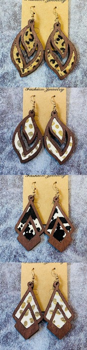 送料無料 手作りウッドリーフシェブロンベゼルインレイ本革イヤリング女性木製フローラルエンボスレザーイヤリング 花柄 指輪 天然 AE33211008044817531056
