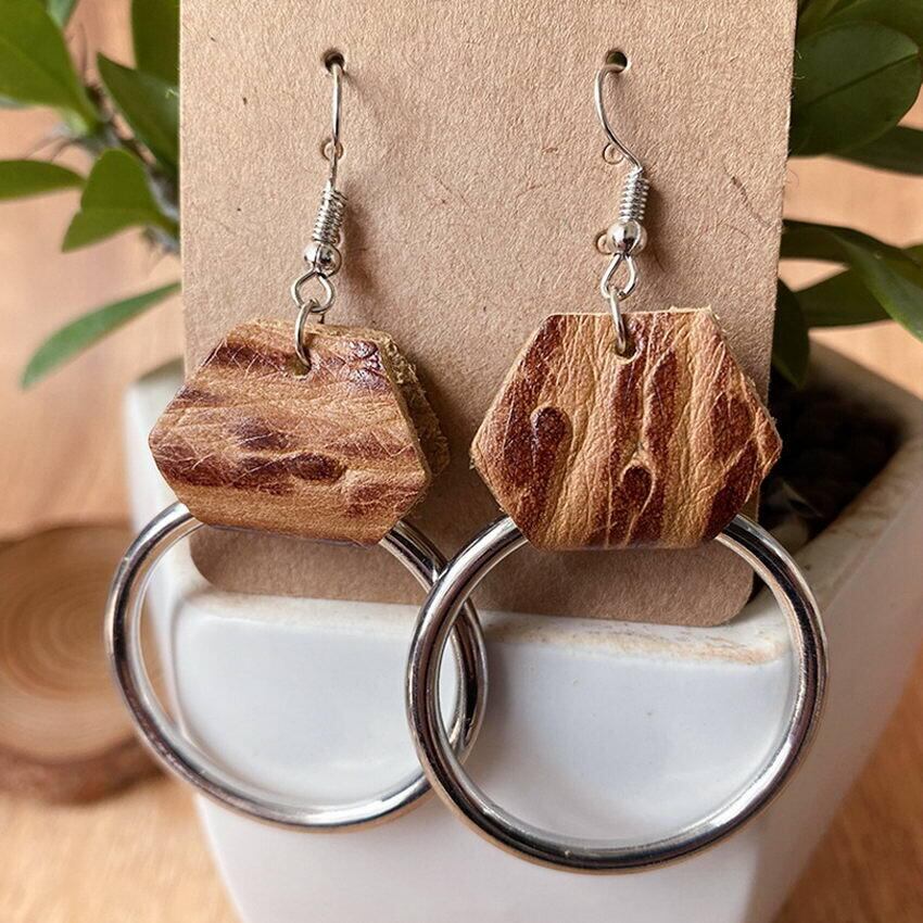 送料無料 六角本革ラップメタルサークルブラブライヤリング女性花柄シンプルな幾何学的なヴィンテージジュエリー レザー 指輪 フラワーデザイン 天然 ビンテージ AE33211008090178130237