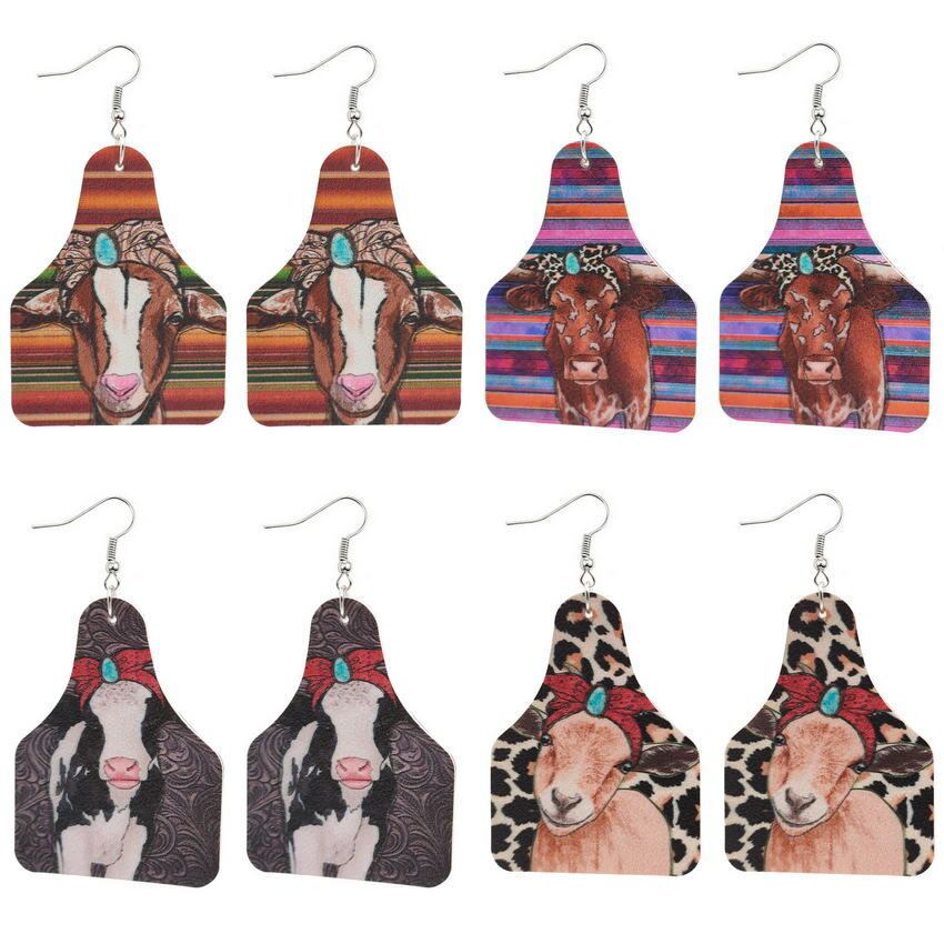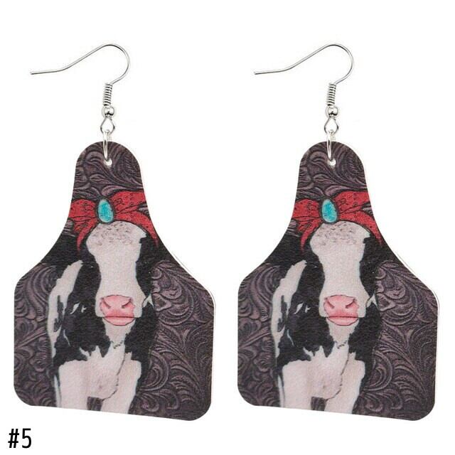 送料無料 ファームライフ牛革プリント牛イヤリング女性 Pu レザー牛タグセラーペイヤリング西洋農家ジュエリー 指輪 AE33211008026412068895