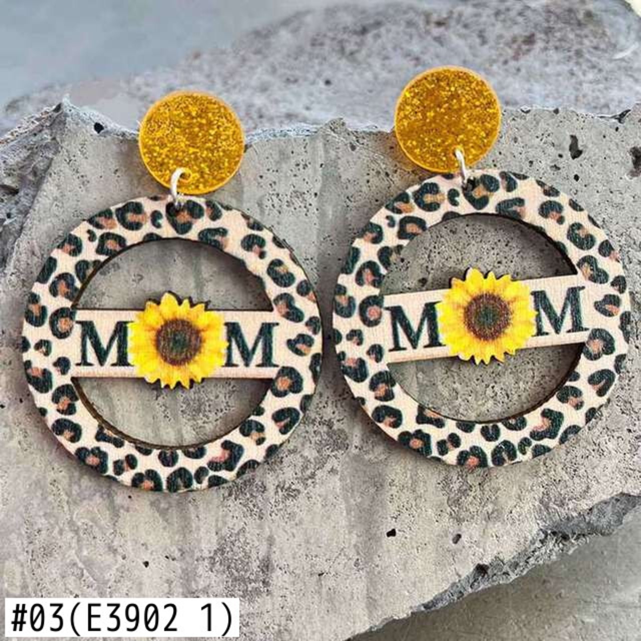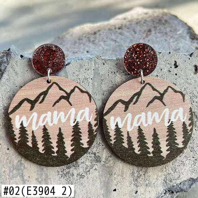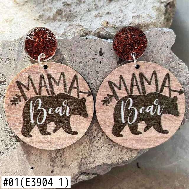 送料無料 ラウンド ウッド ママ ベア イヤリング アクリル グリッター ディスク レインボー ヒョウ ママ イヤリング 母の日 イヤリング 指輪 AE33211008019696498749