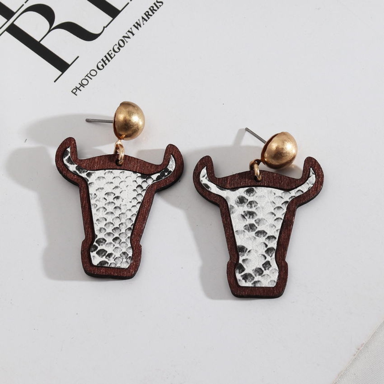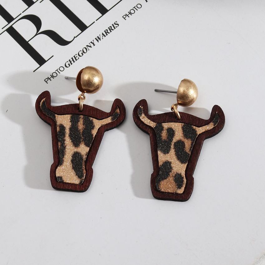 送料無料 フェイクレザーヒョウ木製ベゼル牛ヘッドブラブライヤリング女性かわいい雄牛イヤリング 2022 手作りジュエリー 大人ガーリー スウィート キュート カジュアル ファー 指輪 AE33211008038927918688