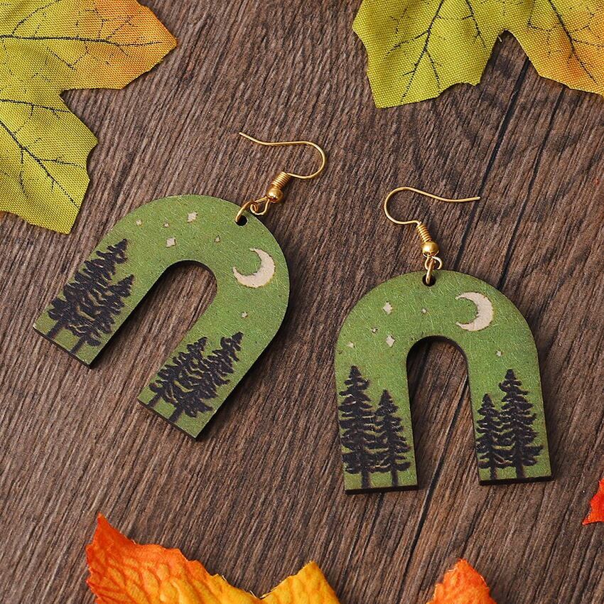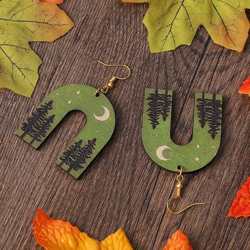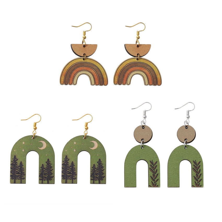 送料無料 環境にやさしい天然木のアーチイヤリング女性ツリーライン U シェイプレインボーステートメントイヤリング木製ギフト ナチュラル 指輪 AE33211008075083883615
