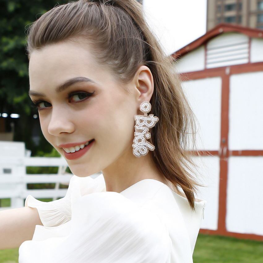 送料無料 ホワイトシードビーズ花嫁介添人花嫁イヤリング手作りシードビーズクリスタルボトル除草ブライダルイヤリングジュエリー 指輪 AE33211008018841035123