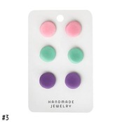 送料無料 3 ペア手作りポリマークレイラウンドイヤリング女性キャンディーカラーシンプルなサークルディスクスタッドピアス洋風トレンディジュエリー 指輪 AE33211008061173470822