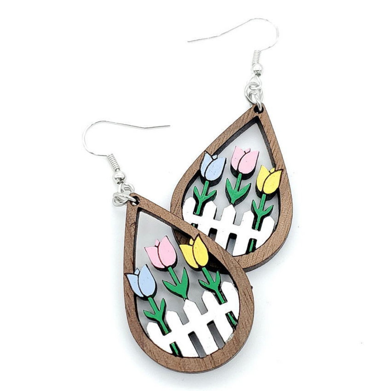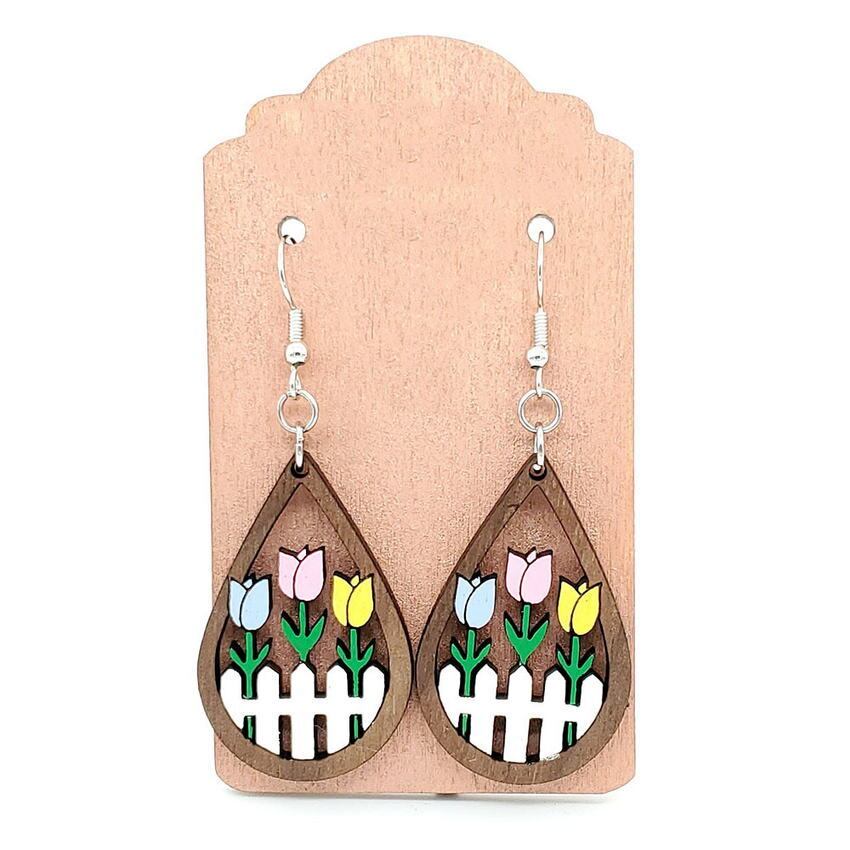 送料無料 レーザーカットウッドティアドロップフェンスチューリップイヤリングレディースジュエリー 指輪 AE33211008050556991633