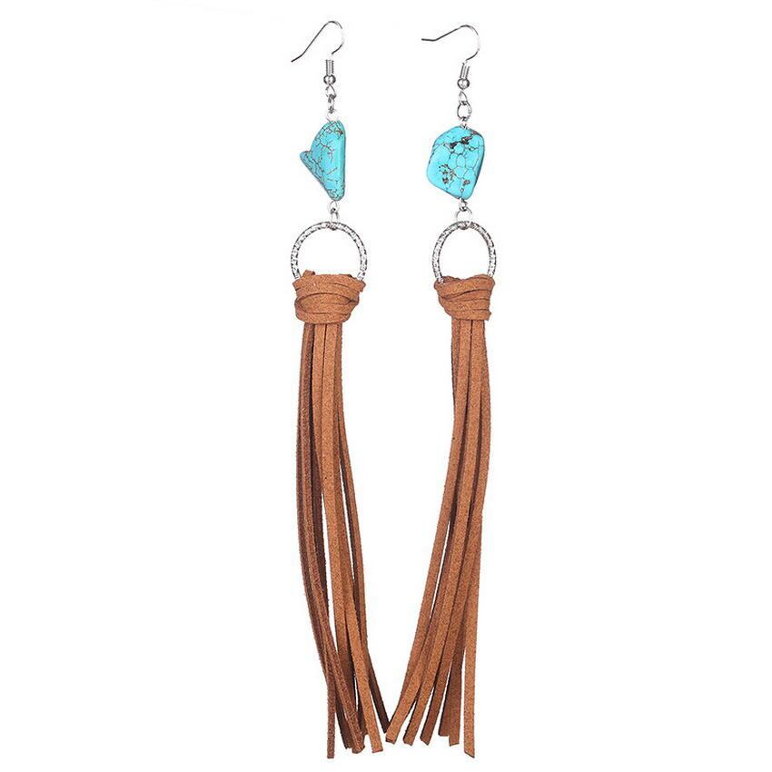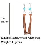 送料無料 18.5 センチメートル生 Kallaite 石ノットベルベットスエード Tel ロングイヤリング女性 2021 ボヘフリンジステートメントイヤリングジュエリー スウェード 指輪 AE33211008062524185112