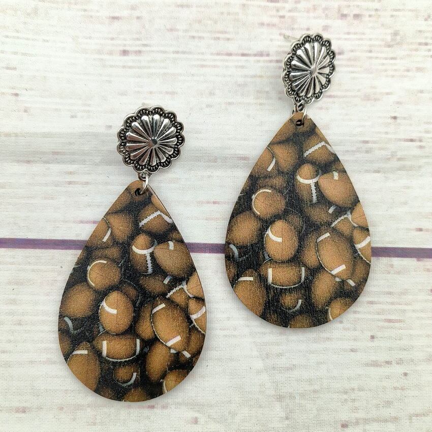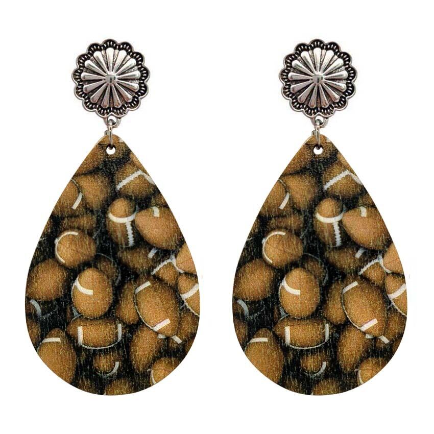 送料無料 舗装野球フットボールプリントウッドティアドロップダングルイヤリング女性スポーツゲームボールイヤリングギフト彼女 指輪 AE33211008037395879024