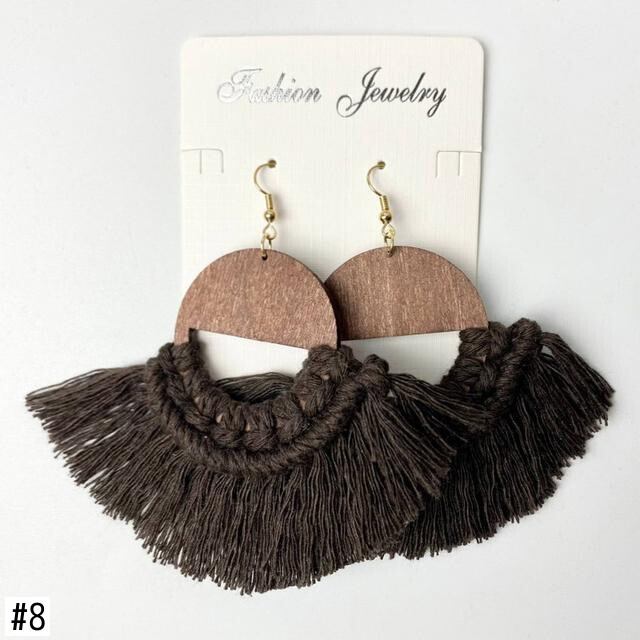 送料無料 カットアウトウッドラウンド織りマクラメイヤリング夏ボヘミアン綿糸ファンフリンジ電話イヤリングジュエリー コットン サマー 夏物 指輪 AE33211008056231725745
