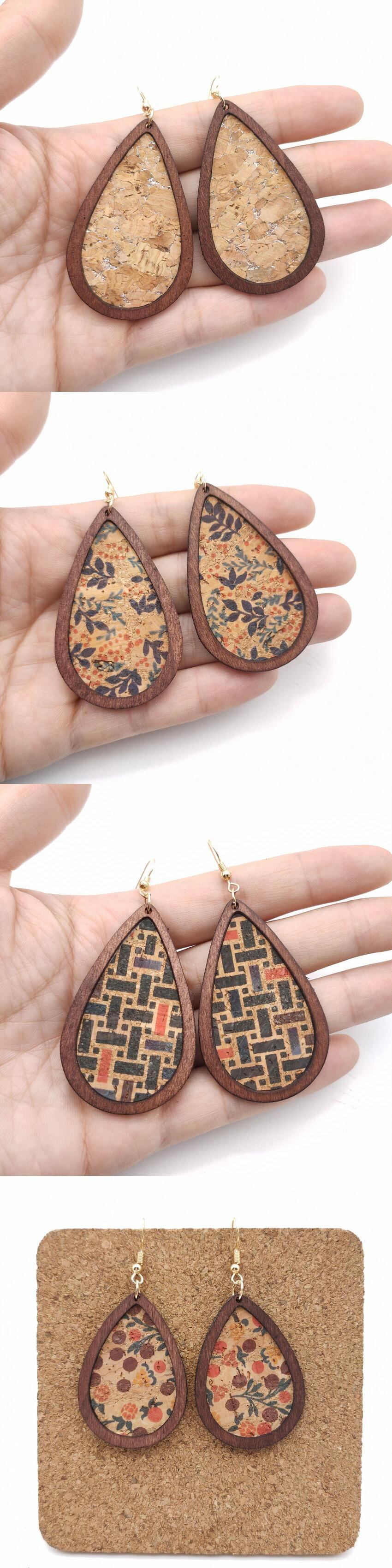 送料無料 秋の衣装木製コルクティアドロップイヤリング女性抽象幾何学模様木製イヤリング軽量ジュエリー 指輪 AE33211008076010553557