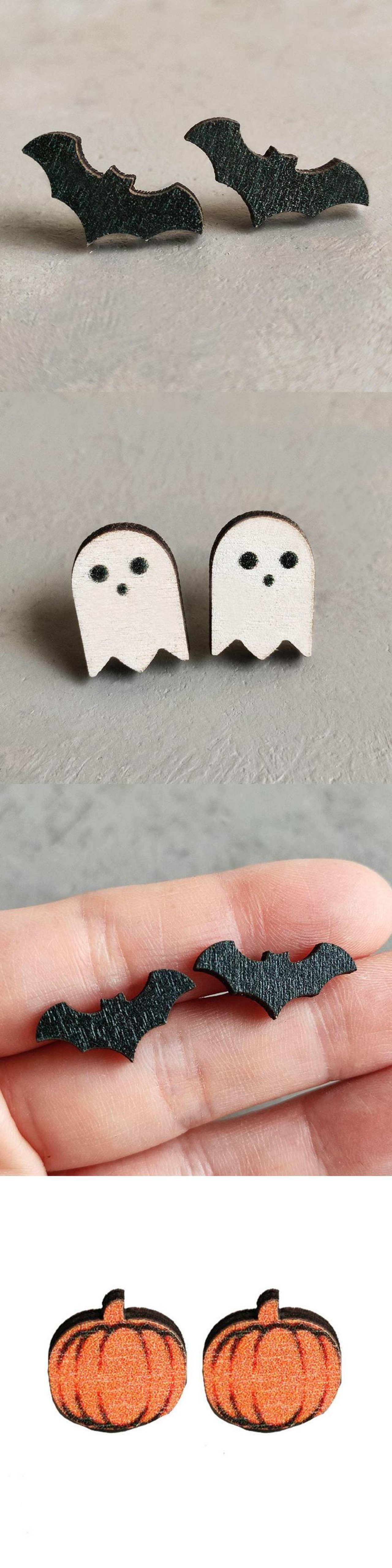 送料無料 木製ゴースト スタッド イヤリング秋カボチャ イヤリングかわいい楽しい風変わりなジュエリー黒猫コウモリ スカル ポスト イヤリング ジュエリー ブラック 大人ガーリー スウィート キュート カジュアル 指輪 AE33211008068090714937