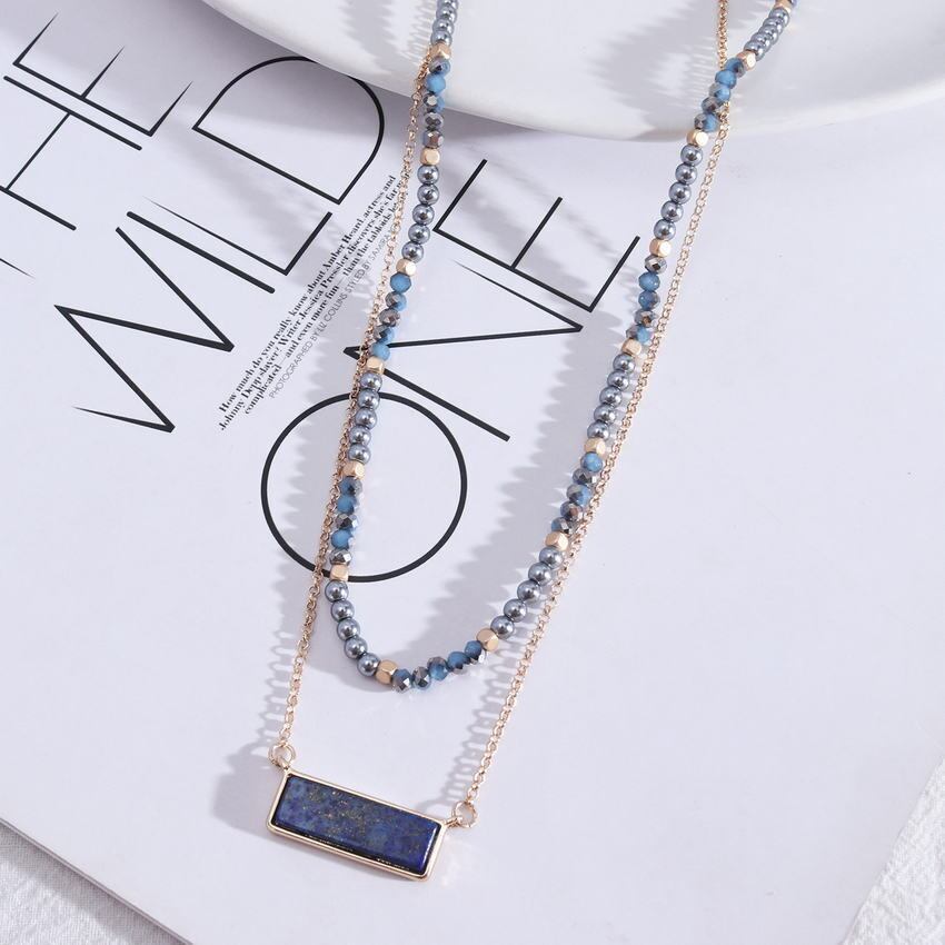送料無料 レイヤード ホライゾン ラピスラズリ ストーン バー ペンダント ネックレス 2021 ゴールドカラー キューブ ビーズ パール GL ビーズ チェーン ネックレス レッド レース 真珠 AE33211008037438361400