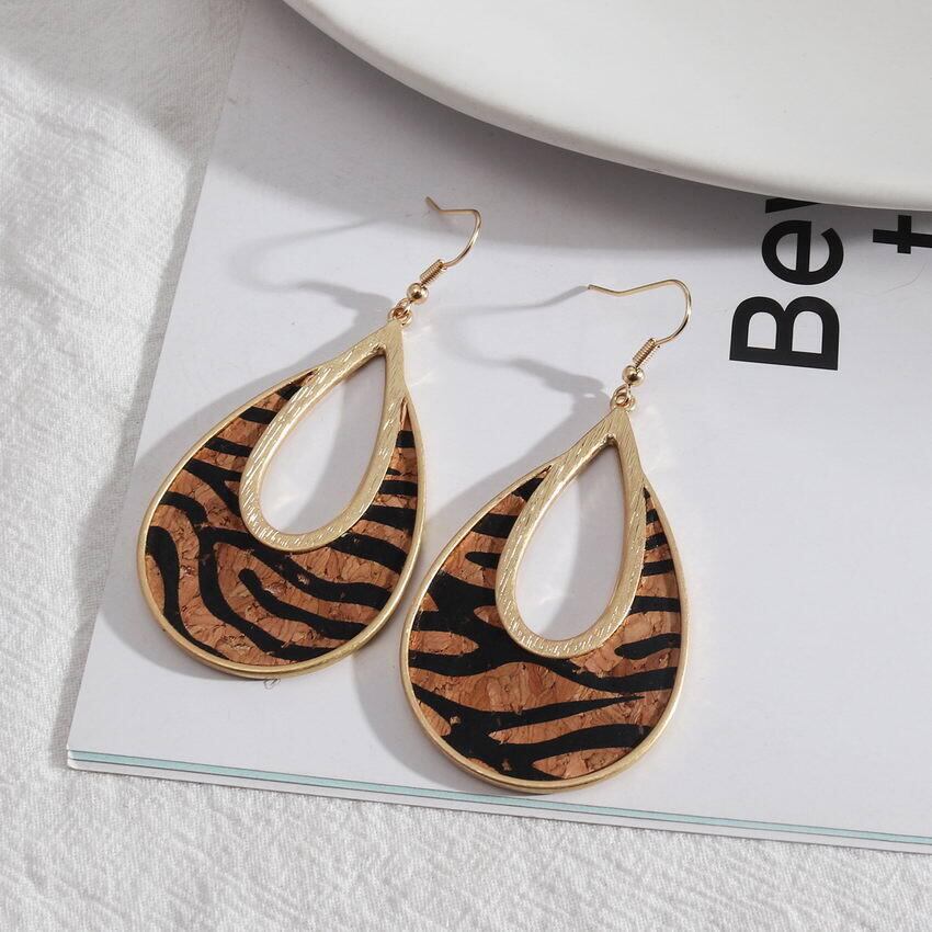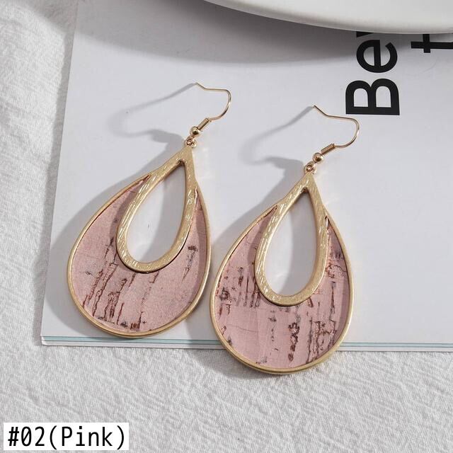 送料無料 カットアウト メタル フレーム ナチュラル コルク ティアドロップ イヤリング レディース アメリカとヨーロッパ ステートメント イヤリング ブティック プレミアム 指輪 天然 AE33211008024834931634
