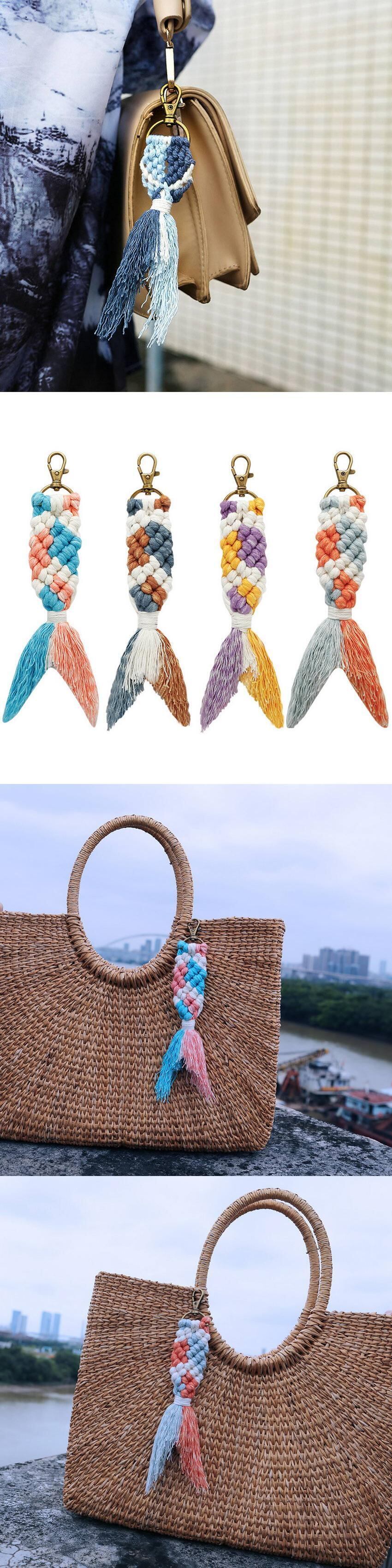 送料無料 手作りカラフルな木綿糸織り人魚マクラメ電話キーホルダー 2021 女性バッグペンダントアクセサリー コットン チェーン AE33211008094900206096