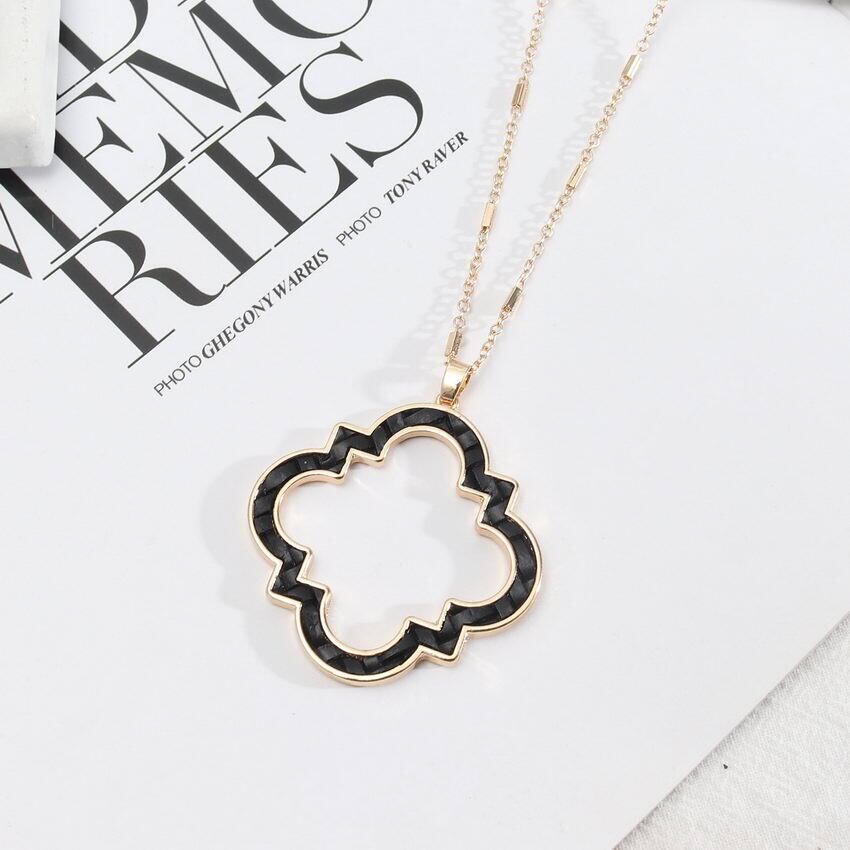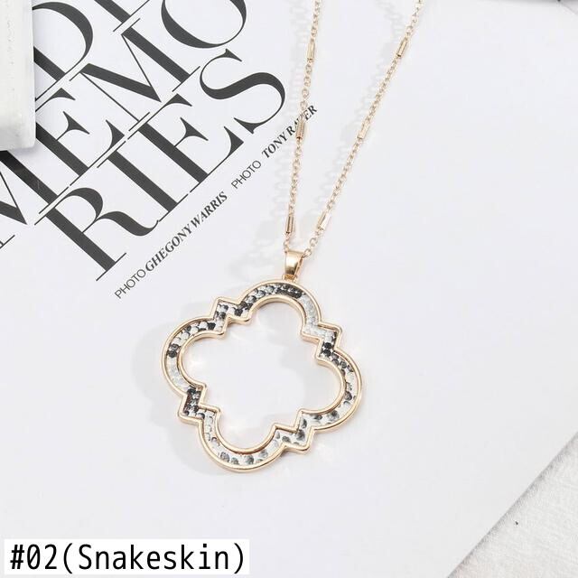 送料無料 Pu レザーヒョウ蛇モザイクオープン四葉ネックレス女性 2021 トレンディ Clics ロングネックレスカットアウトクローバージュエリー レース AE3321100807907324805