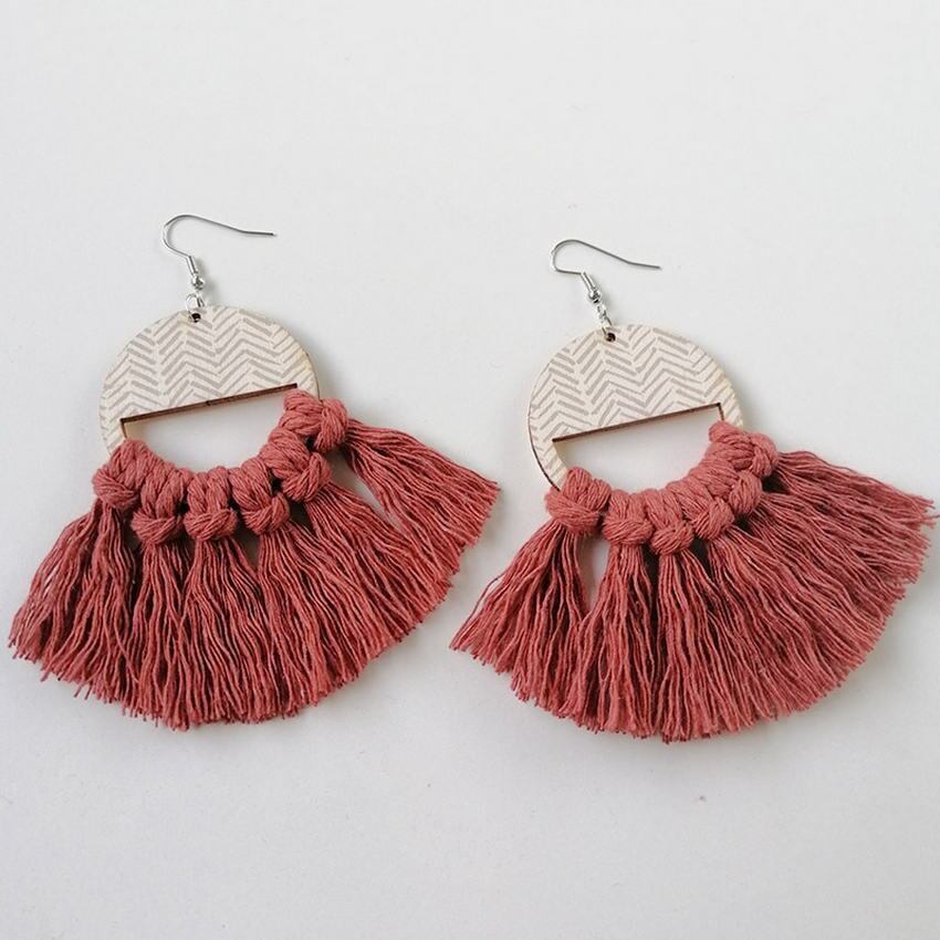 送料無料 ニシンの骨プリントラウンドウッド Tel イヤリング女性エスニックスタイルボヘミアンフリンジマクラメイヤリングジュエリー 指輪 AE33211008064440062711