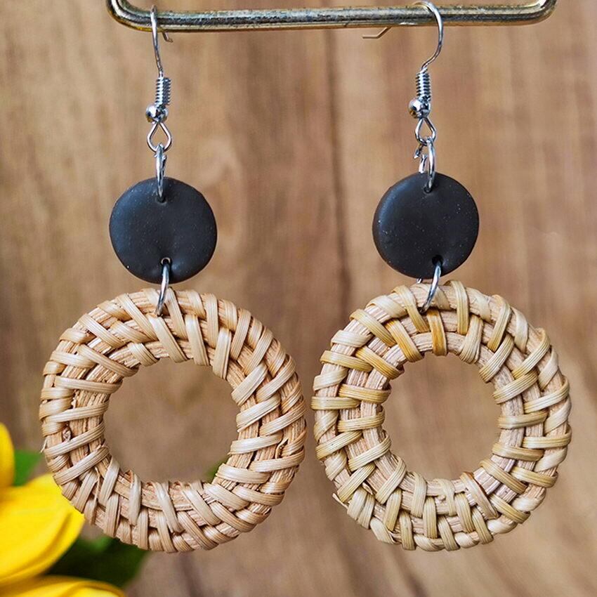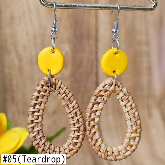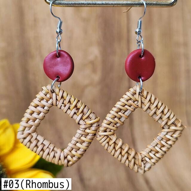 送料無料 着色ポリマークレイディスクサークルティアドロップ織籐イヤリング女性幾何学ムーンオープン菱形ブラブライヤリングジュエリー レッド 指輪 AE33211008017882267314
